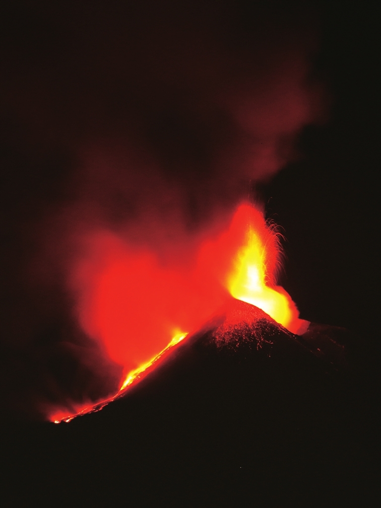 这是8月14日在意大利西西里岛卡塔尼亚拍摄的正在喷发的埃特纳火山。