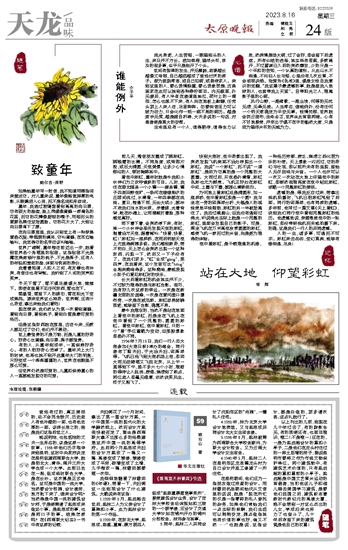 遗憾的是,等我反应过来,想拿出相机拍摄时,飞机已把彩虹甩到了后面。同行的邵燕祥,也有同样的遗憾。多年前,他写过一篇文章《天上看虹》,谈到我们同行空中看到完整彩虹的经历。他遗憾地说,亲睹悬挂空中的一轮彩虹,却没带照相机而未能拍摄下来。的确,这是我们一行人的共同遗憾。