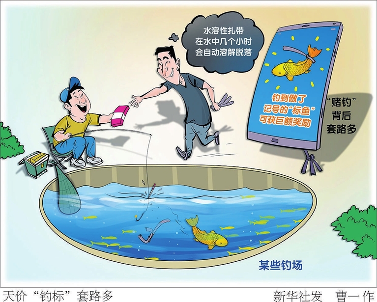 近年来,一些地方的钓场频现天价“钓标”乱象——钓客在规定时间内钓到做了记号的“标鱼”,可获巨额奖励,有的“标鱼”奖励高达60万元。这是“钓鱼”还是“赌博”?“新华视点”记者对相关现象进行了调查。