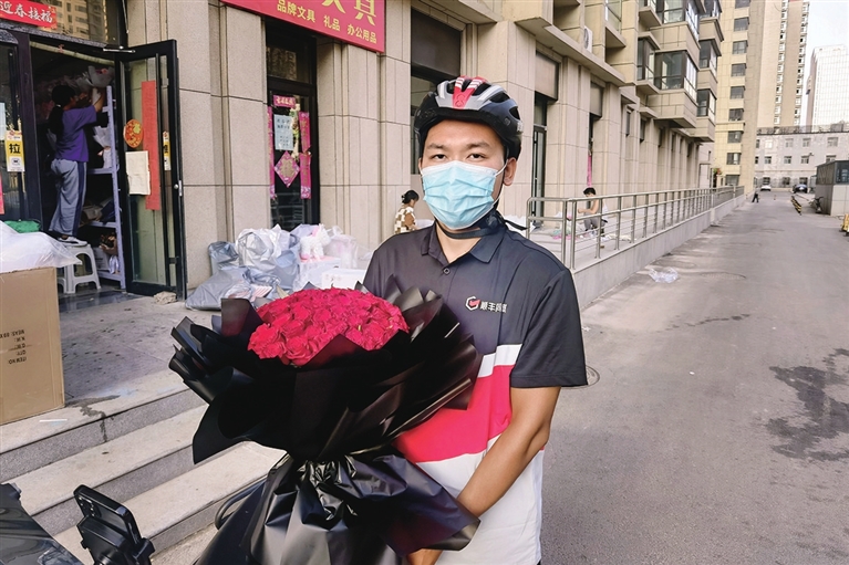 快递小哥刘鑫也提前准备了一份礼物,想借此机会给妻子一个惊喜。他笑着说:“越是浪漫的节日,快递量越大,我们越忙。不过,在特殊的日子里,每送达一件快递就传递了一份情意,工作更有意义。”