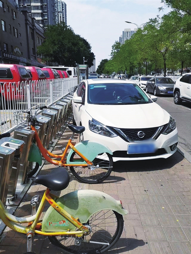 拍摄经过:8月15日,我在千峰南路与沙沟中街交叉口往南百余米处路西看到,一辆白色轿车停在公共自行车租赁点内,将七八个锁桩堵死,导致市民无法还车。希望相关部门加强监管,及时处理这种交通违法行为。
