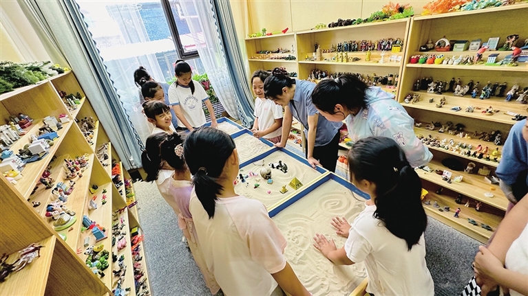 活动由巨轮街道社区教育学校与滨河东路小学联合举办,划分为成人组和儿童组,儿童组的环节包括“我手画我心”和“团体沙盘游戏”。在“我手画我心”环节中,心理咨询师赵晓航鼓励孩子们绘制他们心中的家,这为孩子们提供了一个认识和理解自己的机会,同时也让家长和老师更深入了解孩子的内心世界。随后,赵晓航引导小朋友们进行团体沙盘游戏,每个参与者都能摆放沙具,创造一个自由且受保护的空间,在这个环境中,每个成员都是互相的镜子,能更真实地看到彼此。