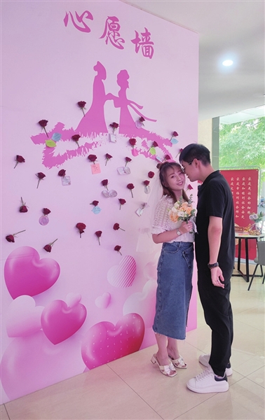 窗口负责人钱智华告诉记者,为了给新人们提供更好的服务,万柏林区民政局提前半个月便开启七夕预约通道,分时分段预约登记,一对一电话温馨提示,为当天领证的新人们现场审核相关手续,最大限度地满足新人的登记需求,确保登记高峰秩序良好,氛围温馨浪漫,努力让新人们满意而归。今年七夕这里的登记人数高达160对,是去年的两倍。