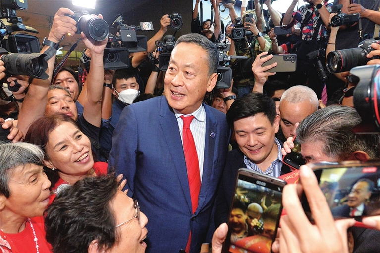 根据泰国宪法,总理由国会上下两院全体议员投票选举产生。当天,赛塔作为唯一获提名的总理候选人,在参加投票的728名议员中获得482票支持,当选泰国新总理。