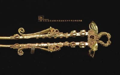 这一切都与清人薛福成笔记中的记载相吻合。孙策去世后,大乔伤心数月亦离开人世。这枚“比心”金钗背后,可能是孙策和大乔的轰轰烈烈的爱情故事。