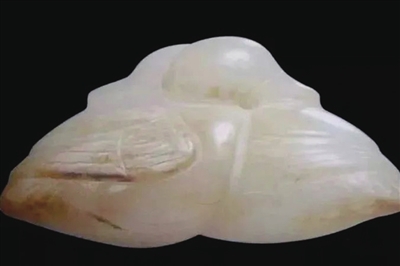 这是一件由新疆和田玉料雕刻而成的鸳鸯饰件,两只鸳鸯双翅并拢,交颈而卧,两情缱绻。它出土于内蒙古自治区哲里木盟(现通辽市)奈曼旗青龙镇东北的一座辽代墓葬中,考古报告称为“辽陈国公主墓”,这枚玉佩正是公主的陪嫁物,实际上这座墓是陈国公主和驸马萧绍矩的合葬墓。
