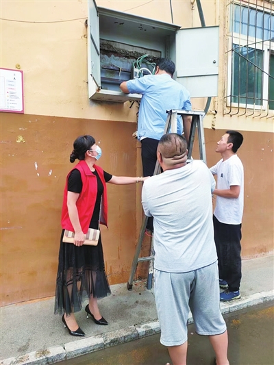 8月22日中午,齐新萍下班回家赶着做好饭,一家人准备开饭时,接到了居民的急电。辖区前进路南段21号院13号楼住户们反映,不知何故,刚才该楼突然停电了,居民们很着急,求助网格员。齐新萍赶紧放下碗筷,骑着车子就赶到了现场。经她查看分析,应该是配电箱内的电线出了问题,但如何维修得求助专业人士。随后,她和小区物业维修人员取得联系。一会儿工夫,物业人员赶到现场,经过勘察,确实是电线老化断裂导致的停电。经过更换电线和维修,一小时后,该楼恢复了供电。