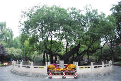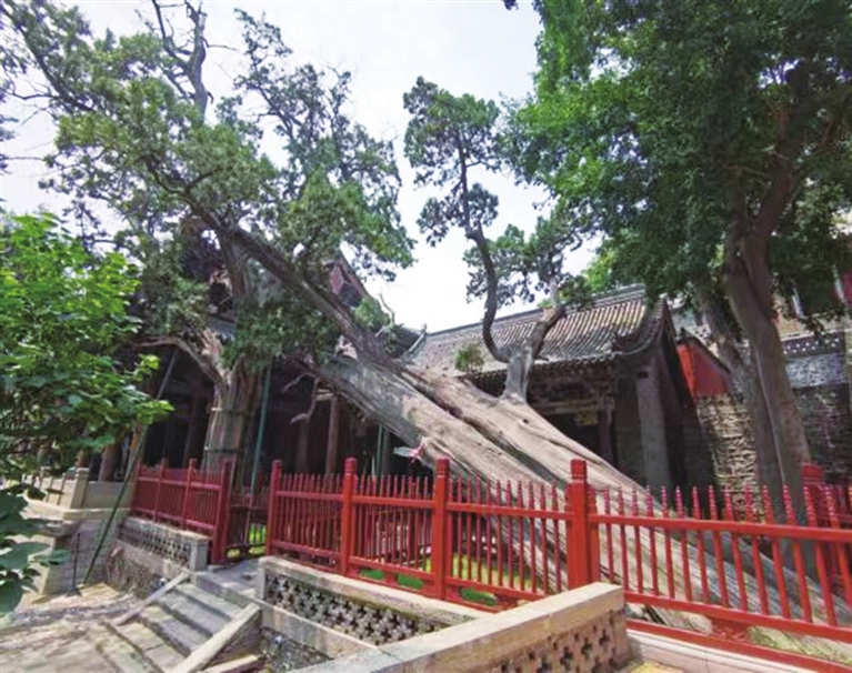 晋祠周柏,位于圣母殿北侧,树高18米,树身粗大,向南倾斜,被另一株古柏所支撑,树叶披覆在圣母殿顶。因该树状似虬龙,故又称卧龙柏。悠悠千年,周柏引来诸多文人骚客的赞誉和夸奖,历代讴歌者甚多。宋代著名文学家欧阳修,曾以“地灵草木得余润,郁郁古柏含苍烟”来歌颂它。清代著名书法家、书画家、医学家傅山,曾以“晋源之柏第一章”的题词来讴歌它。久而久之,周柏与难老泉、侍女像被称为“晋祠三绝”,成为晋祠最让人回味的旅游景观;狄村唐槐,位于狄仁杰文化公园内,据太原最早的《阳曲县志》记载,该古槐为唐朝名相狄仁杰之母亲手种植,又称“狄母手植槐”,距今已有1300多年历史。相传狄仁杰小的时候,居住的地方有几户泼皮无赖,母亲担心他染上不良习惯,便举家搬迁到现在的狄村,每日书声琅琅,邻里亲善。狄母感叹地说:“有道是千金买邻、居必择邻,这里才是适合居住的地方。”于是便在狄村定居下来,并亲手种下了一棵槐树,作为迁居的寄托和祥瑞的象征。或许是心诚则灵,这株古槐直至今日依然枝繁叶茂、身强体健。