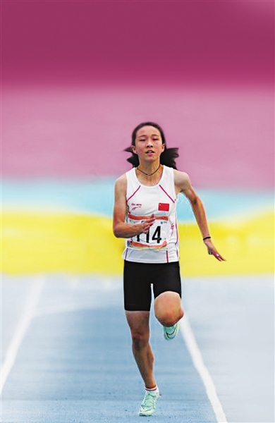 今年4月,陈妤颉在浙江省青少年田径锦标赛14-15岁组女子200米比赛中,以23秒61的好成绩夺冠。