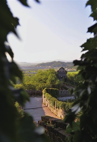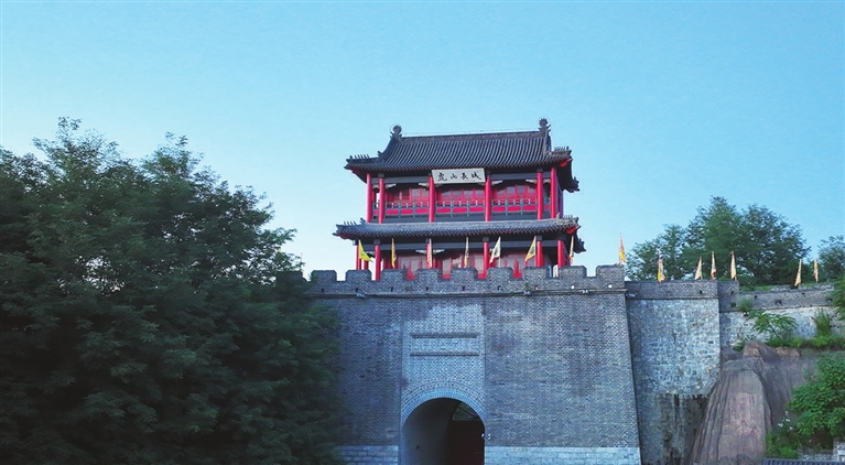 虎山位于辽宁省丹东市鸭绿江畔,夏日,在植被映衬下,长城蜿蜒多姿,壮美秀丽,吸引游客前来参观游览。