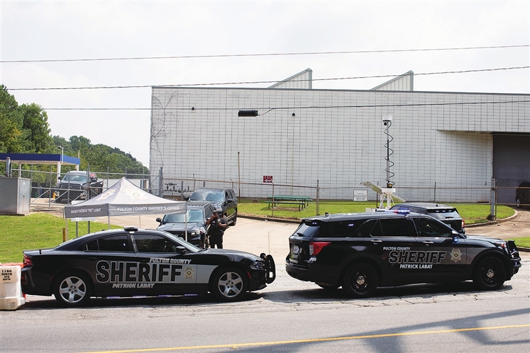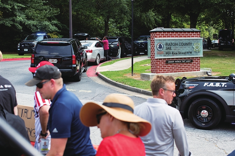 特朗普是首名受到刑事指控的美国前总统。24日晚7时,特朗普抵达佐治亚州亚特兰大市,随后乘车前往富尔顿县监狱。在这里,他按普通嫌疑人必经的司法程序“报到”并留存嫌疑人照片。