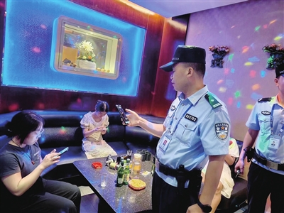 8月25日晚,迎泽派出所民警对辖区娱乐场所、宾馆酒店等重点行业开展治安夜查,并在工人文化宫、体育馆等人员密集区域开展反诈宣传活动,营造安全稳定的社会环境。 辛欣 梁艳 摄
