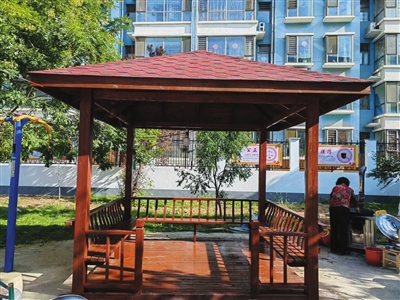 改造中,聘请专业人员对凉亭进行加固,重新刷油漆,并对破损的木质地板重新整修,焕然一新的凉亭提升了小区“颜值”,成了小区居民乘凉聊天、孩子嬉戏的好去处,邻里之间的交流也多了,凉亭已成为社区宜居环境的一道亮丽风景线。居民刘女士说:“这个废弃凉亭之前环境卫生状况较差,没想到经过改造变得这么美,瞬间给小区增加色彩。现在,我每天都会领着孩子过来坐坐,和邻里沟通也方便很多。”