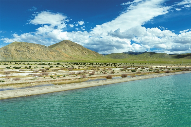 别若则错,位于西藏自治区阿里地区,海拔约为4500米。八月的别若则错,湖畔动物成群,风景秀丽。