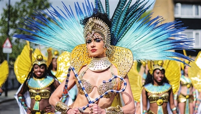 8月28日,表演者在英国伦敦参加诺丁山狂欢节。