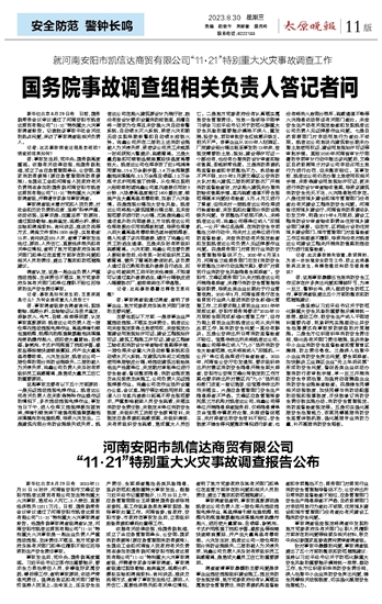 河南安阳市凯信达商贸有限公司“11·21”特别重大火灾事故调查报告公布