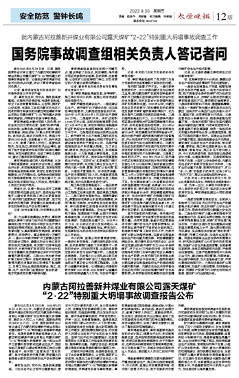 内蒙古阿拉善新井煤业有限公司露天煤矿“2·22”特别重大坍塌事故调查报告公布