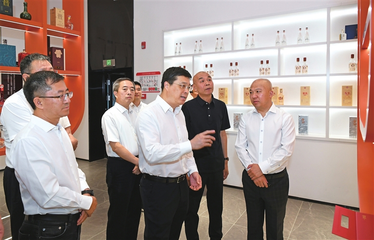 始建于1950年的太原酒厂是一家“中华老字号”白酒酿造企业。韦韬来到企业晋酒电商直播基地,结合大屏听取企业改革发展及生产经营情况介绍,观看“晋泉”“晋祠”等品牌系列产品,叮嘱企业把握行业发展趋势,找准定位、错位发展,坚守品质第一,加强创新研发,丰富产品种类,抢占市场份额,不断提升企业效益。随后,韦韬走进直播区,详细了解热销单品、消费者构成和线上成交量,希望他们抢抓数智化潮流,推动新技术与传统酿造工艺融合应用,加大线上线下宣传推广力度,不断提升产品知名度和品牌影响力。