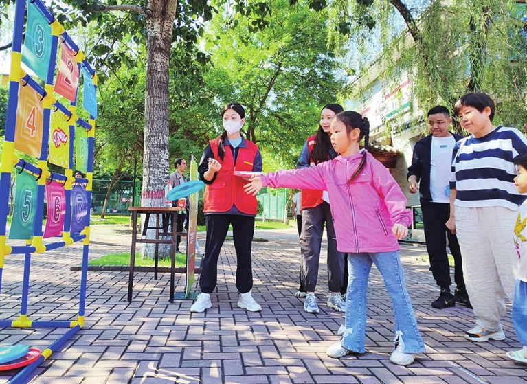 当日,社区亲子运动会现场十分热闹,加油声、欢笑声不绝于耳。手疾眼快、摸高挑战、投篮挑战、飞盘九宫格等形式多样的趣味活动,吸引了50个家庭参与。在紧张而欢乐的气氛中,家长和孩子携手竞技,在汗水中拉近距离,在欢笑中留下难忘记忆。“亲子运动会集趣味性、竞技性、娱乐性于一体,将钻、爬、跑、跳等动作融入游戏环节,锻炼孩子的手眼协调能力,同时也增进了亲子关系。”社区工作人员说。