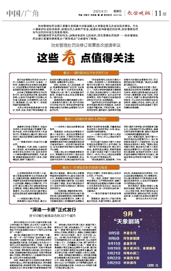 公安部法制局有关负责人表示,草案适应治安形势发展需要,以问题为导向,将新出现的影响社会治安的行为纳入管理范围,织密了法网,并进一步优化、完善了办理治安案件的程序规定,为公安机关依法维护社会治安秩序,保障公共安全,保护公民、法人和其他组织的合法权益提供了更为完善的法律保障。