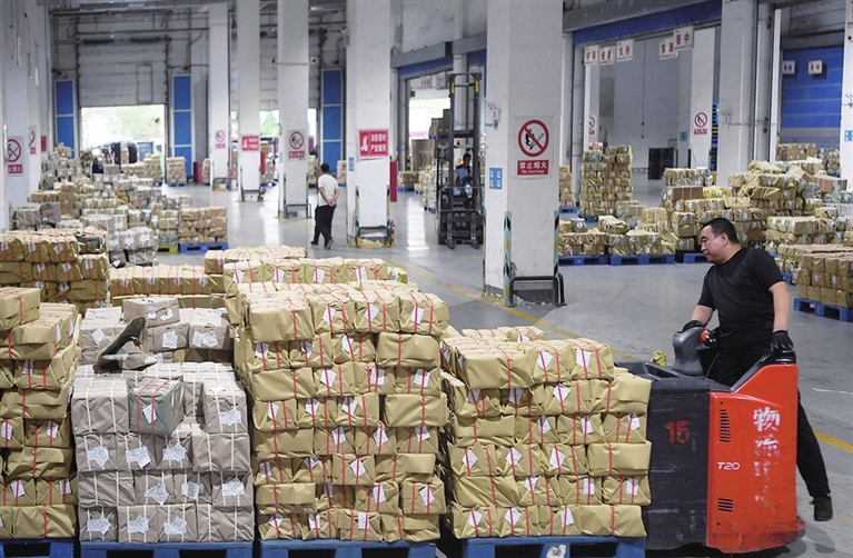 8月30日,山西新华书店集团太原有限公司教材发行中心人员正在分发新课本。目前,2023年秋季新学期教材已全部到货,该中心专门开辟绿色通道,全力以赴实现教材按时分发配送。 张昊宇 摄