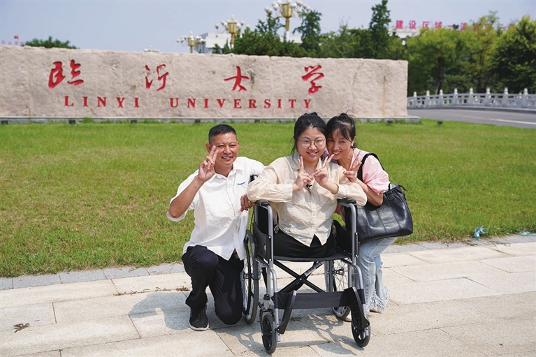 蒋张子怡和父母在山东临沂大学合影(9月1日摄)。