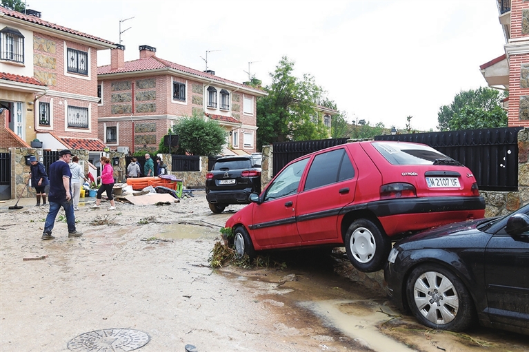 这一极端天气从9月2日延续至今,导致多地发生洪灾,房屋道路被淹,交通中断。在受灾较为严重的马德里自治区东南部,多处村镇的桥梁道路损毁,一名男子被水冲走,下落不明。