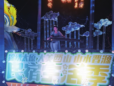 傍晚的晋阳湖,夕阳染红了西边的天空,平添几分旖旎。桃花岛上,彩灯次第亮起,虽然初秋时节已不见桃花夭夭,但造型逼真的彩灯却再现了花朵盛放的美景。