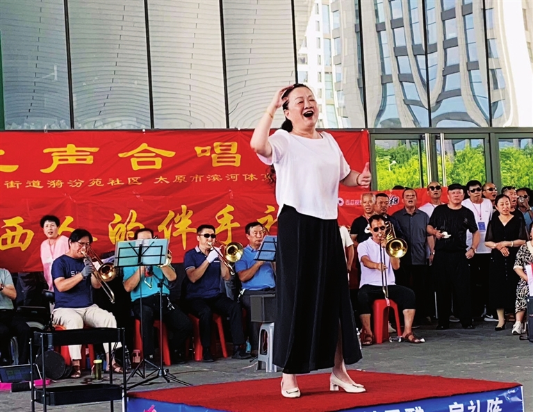 看着这个近千人的群众性合唱场面,听着这一浪高似一浪此起彼伏的歌声,我不知不觉也融入其中跟着唱起来。我们的城市,有这么一支能带动老百姓全身心投入的合唱队伍,真是汾河之滨一道亮丽的风景线!杨芳老师说的一句话:“是我走进了老百姓的歌声中”,让我感悟最深。