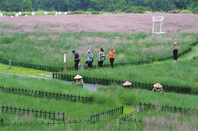 近日,广西南宁市园博园里的粉黛乱子草陆续披上粉红“衣裳”,宛如一抹粉红色的云霞。