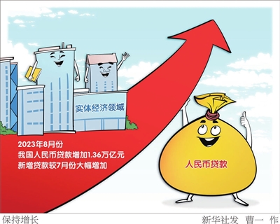 8月,企(事)业单位贷款增加9488亿元;8月末,我国社会融资规模存量同比增长9%,对实体经济发放的人民币贷款余额同比增长10.9%。