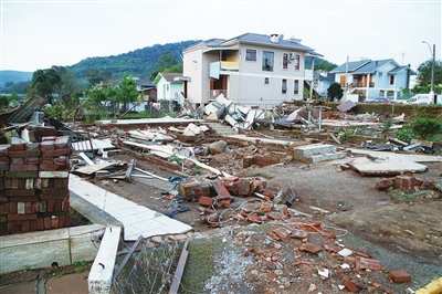 这是9月10日在巴西南里奥格兰德州科利纳斯市拍摄的被洪水摧毁的房屋。