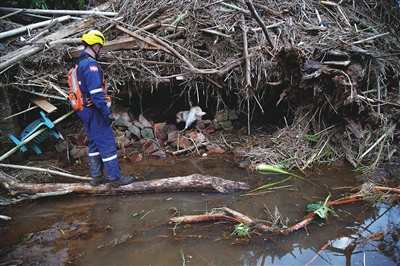 9月10日,消防员在巴西南里奥格兰德州科利纳斯市搜寻失踪者。