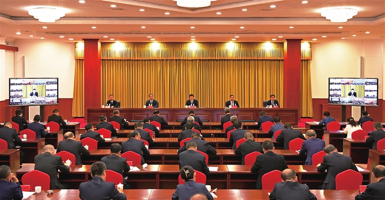 全市学习贯彻习近平新时代中国特色社会主义思想主题教育动员部署会会场。 梁琛 摄