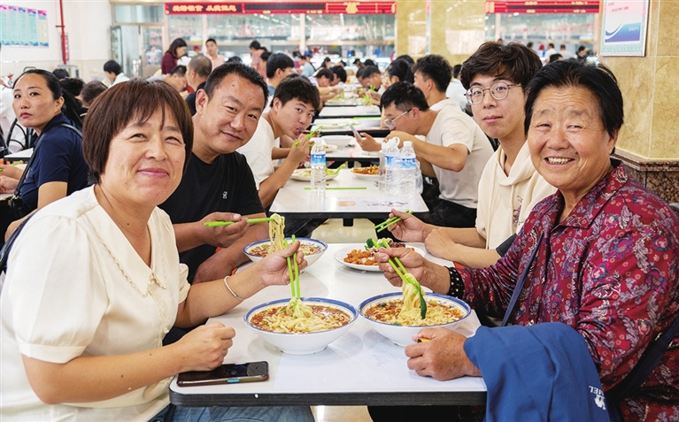 在窗口前排队等候打饭的软件学院本科新生柏明乐告诉记者,从家里出发前,爸妈专门给他做了一顿“上车饺子”,来到学校后,学校又及时赠送了“下车面”,细致的服务让人倍感温暖。同样来自软件学院的新生岳泽桓一边吃面一边说,学校的饭菜很可口,当天吃“迎新面”,他专门让窗口的师傅给多打了点儿。