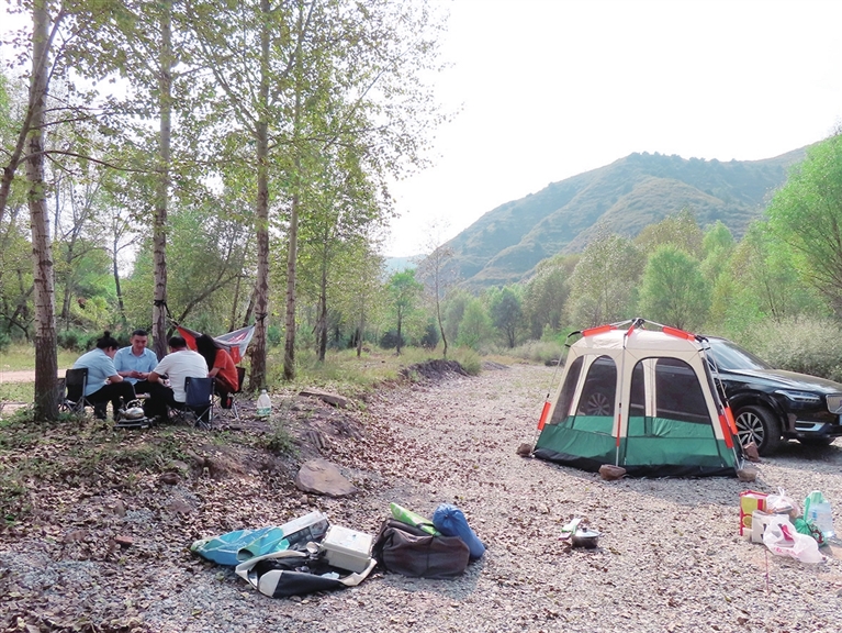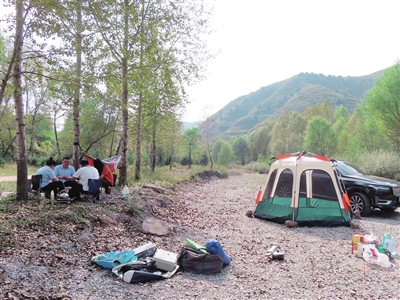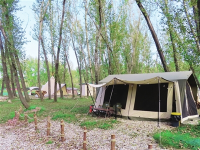 置身自然,听鸟叫虫鸣阵阵,与三两好友作伴。撑起帐篷、打开折叠椅、再点亮氛围灯……已成为不少游客向往的“诗和远方”。