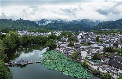 这是9月13日拍摄的黟县宏村(无人机照片)。