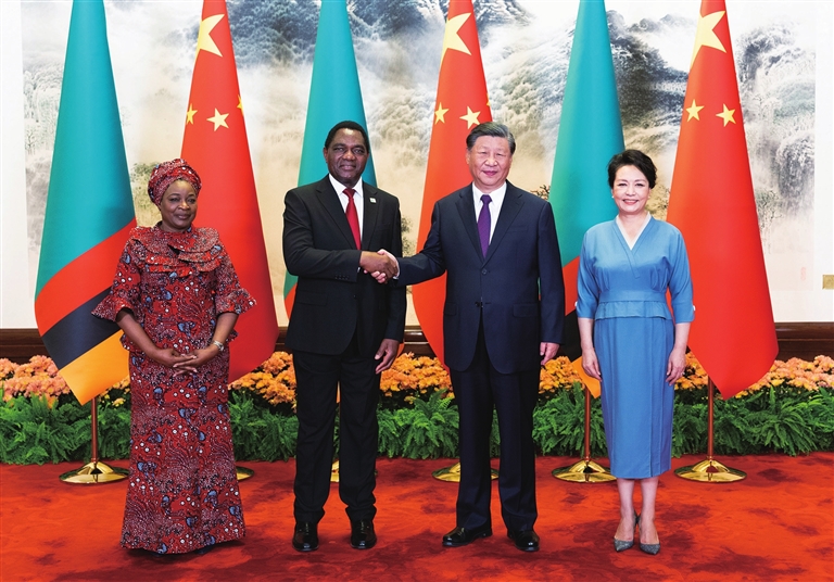 习近平指出,当前,发展中国家群体性崛起,国际影响力不断增强,已经成为不可逆转的时代潮流。我们要加强团结协作,践行真正的多边主义,坚定维护国际公平正义,努力提升发展中国家话语权,维护两国和广大发展中国家共同利益。中非合作已经成为南南合作和国际对非合作的引领者。真诚平等、互利共赢、捍卫正义、开放包容这些中非友好的主线和底色从未改变。中国坚定支持非洲国家走独立自主的发展道路,坚定支持非洲国家成为世界政治、经济、文明发展的重要一极。中方愿同包括赞比亚在内的非洲国家一道,落实好“支持非洲工业化倡议”等中非领导人对话会成果,加强战略对接,深化各领域合作,支持非洲国家不断提升自主发展能力,实现经济复苏和可持续发展,携手构建新时代中非命运共同体。