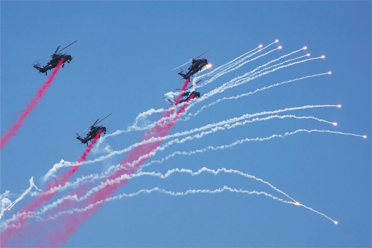 “精彩的视觉呈现背后是日积月累的反复训练。”执行该课目表演任务的直-10飞行员杨博说,“四机开花”需要在短时间内完成多个动作,低空进场,然后大角度快速拉起,随后调整航向快速脱离,对飞行员的飞行技术要求很高。