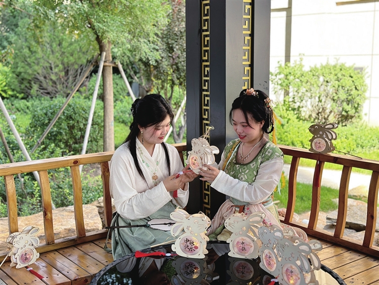 参加社区活动时,不少年轻人身着汉服,齐腰襦裙、琵琶飞袖、点绛红唇,让这个传统节日愈发显得古色古香。你吟一篇《静夜思》,我诵一首《望月怀古》,从苏东坡的“明月几时有”,到张九龄的“海上生明月”,孟浩然的“秋空明月悬”……大家聚在一起,欣赏着古诗词,用心感受着传统文化的风雅之美。