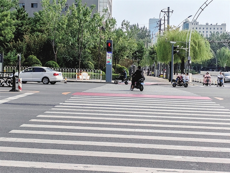 这是9月17日15时30分许在府西街新建路口拍到的。一名骑行者闯红灯。