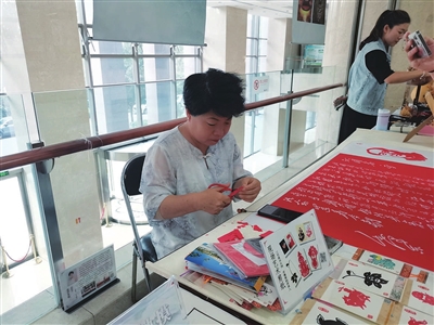 一张红纸、一把剪刀,几分钟就能剪出一幅肖像。在剪纸展示区,太原市工艺美术大师第四代肖像剪纸传承人孟艳萍的一手绝活引得大批职工围观。只见孟艳萍手持银剪、上下翻飞,几分钟,一副头顶如意的小猪剪纸就成形了,寓意为“诸事如意”。“现在有越来越多的年轻人对非遗文化感兴趣,作为传承人,我也在不断创新剪纸的图案和形式,让作品更贴近年轻群体的喜好。”孟艳萍说,传统非遗文化的发展,离不开创新,要时常为传统技艺注入新的“活力”,拿出更多被市场认可的作品,才能将传统技艺更好地传承和发展下去。