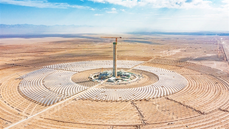 当日,中铁十一局承建的阿克塞汇东新能源光热+光伏试点项目吸热塔顺利结顶,为后续并网发电奠定了基础。该项目位于甘肃省酒泉市阿克塞哈萨克族自治县四十里戈壁,项目建成后,预计可实现年均上网电量17亿千瓦时。