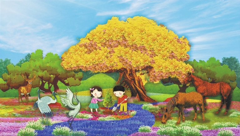 今年花坛中共有47个人物造型,通过采用植物与硬质材料相结合的方式,以及圆雕、高浮雕、剪影等多种表现手法,使人物造型更加逼真、丰满。