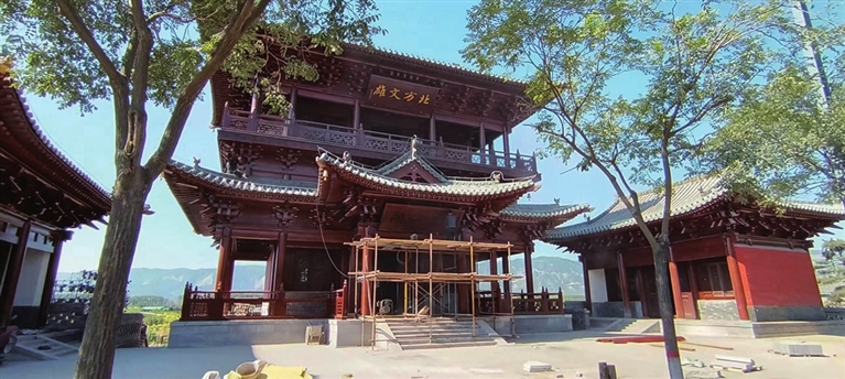 雁丘园各项工程中,占地面积最大、高度最高、内容最丰富的就是好问堂建筑群,目前主体已基本竣工。好问堂东向滨河东路,来往车辆、行人抬头可见两个硕大牌匾,“北方文雄”“千古一问”。