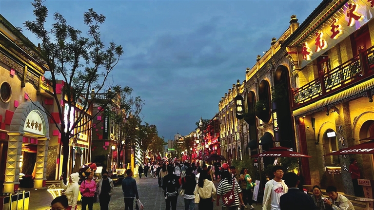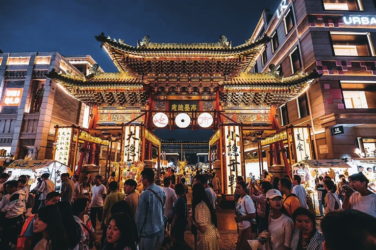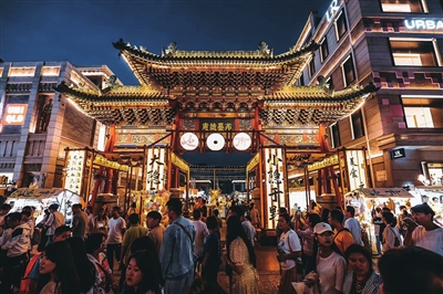 西天退晴,火红的夕阳穿过羊市街,无遮拦地铺洒进了钟楼街。街灯次第亮起,人潮如涌,鱼贯而入,一条街像流动的河,亮了灯的店铺,鳞次栉比,似河里的粼粼波光。时尚潮流、特色美食、夜娱夜赏……这天恰是钟楼街开街2周年,几天前各种庆生活动的余温尚在,中秋、国庆超长假期的消费热潮一触即发。“如果我是第一次来的外地人,肯定会一眼喜欢上这里。”张明说。