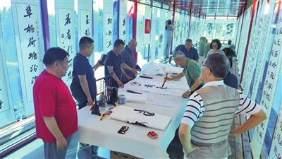 9月20日,尖草坪区南翟村在稼穑文明展览厅举办名家书画展,庆祝中国农民丰收节和中秋佳节的到来。书画名家齐聚一堂,挥毫泼墨现场创作,交流心得体会。 韩睿 赵菁 摄