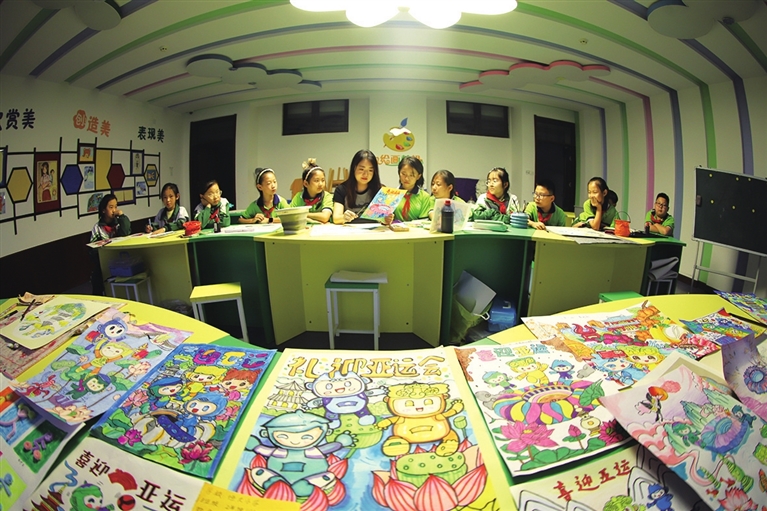 9月20日,小店区恒大小学开展“童心迎亚运”主题活动。孩子们用绘画、剪纸等作品,展现了迎接亚运会的喜悦之情。 张昊宇 摄