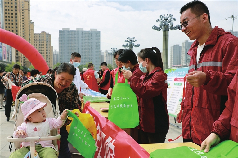 9月20日,小店区文明办、区文化和旅游局、小店街道党工委等21个单位,在该区新时代文明实践中心广场联合举办2023年“公民道德宣传日”活动,通过《中国龙》《人民就是江山》《德耀龙城小店 追寻道德力量》等精彩节目,进一步倡导“爱国守法、明礼诚信、团结友善、勤俭自强、敬业奉献”的良好社会风尚。志愿者们现场发放宣传册、讲解相关法律法规等,进一步宣传和普及《新时代公民道德建设实施纲要》《太原市民文明手册》等法律法规,并为群众提供公民思想道德规范、法律科普、结核病防治、防诈防骗等志愿服务,倡导群众勤俭节约、诚实守信,引导群众文明出行、文明旅游、文明用餐,树立文明健康绿色环保的生活理念。