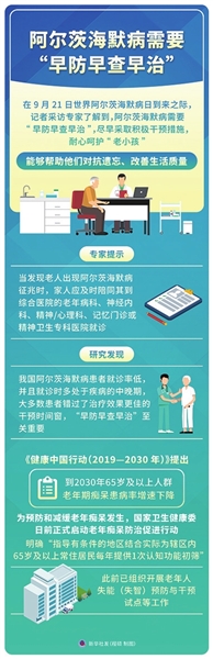 研究发现,我国阿尔茨海默病患者就诊率低,并且就诊时多处于疾病的中晚期,大多数患者错过了治疗效果更佳的干预时间窗,“早防早查早治”至关重要。